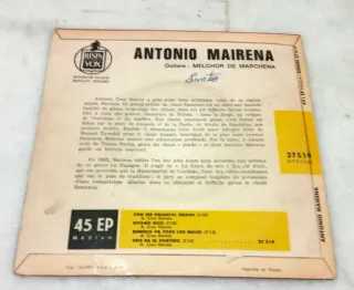 Disco de vinilo El Cante de las Minas de Antonio Piñana.1974. - Referencia: HH 16-769 - Sello: Hispavox - Guitarrista: A. Piñana Hijo - Temas: Cartagenera/Minera, Taranta/Fandango