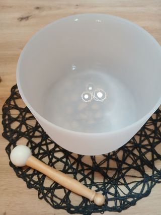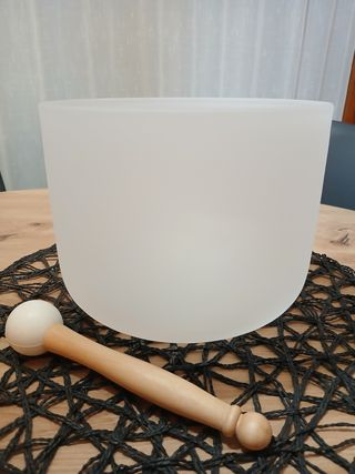 Cuenco de cuarzo de 20cm de diámetro. Ideal para meditación y sonido. - Material: Cuarzo. - Diámetro: 20 cm. - Disponible en las notas Fa o La.