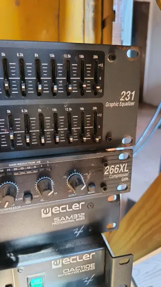 Equipo de sonido profesional en formato rack, ideal para estudios o directos. Precio especificado por unidad. - Ecualizador gráfico DBX 231/ 80e - Compresor DBX 266XL/ 120e - Mezclador ecler SAM312/ 100e - Distribuidor ecler DAC110E/ 100e - Crossover Behringer Ultracurve Pro DEQ2496/ 100e - Crossover Samson S-330/ 130e - Divisor de frecuencia BSS FDS-310/ 200e