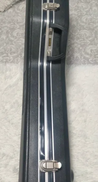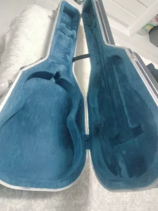 Estuche rígido para guitarra española con interior forrado en terciopelo azul. - Diseño interior que se adapta a la forma de la guitarra. - Cierres de seguridad. - Asa para transporte.