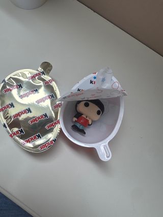 Figura coleccionable de Stranger Things, proveniente de un huevo Kinder Sorpresa. - Diseño inspirado en la serie. - Detalle de vestimenta en rojo y azul.