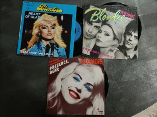 Precio por el lote 8 discos single vinilo 45 rpm 7". Discos limpios comprobados con audicion OK SIN SALTOS. Carátulas desgaste acorde a edad, variable. Algunos con arrugas, marcas de relieve, algun rasgado... VER FOTOS . Sueltos NO NEGOCIABLE A 5€ ((The tide is high 7€). - Call Me - BSO de american gigolo. Rasgado inferior reparado, nombre en contra. - I'm always touched by your Presence, Dear (escritura en contraportada) - Denis - Heart of Glass (escritura, rasgado lateral reparado) - The Tide is High (resto adhesivo en contraportada) - Atomic. Nombre en portada y contraportada. - Island of Lost Souls (celo en 2 sitios) - Dreaming