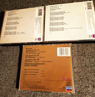 Conjunto de 9 CDs de música clásica de Joseph Haydn, dirigidas por Antal Doráti con la Philharmonia Hungarica. - Incluye las sinfonías números 72-83. 4CD - Incluye las sinfonías números 84-95. 4CD no booklet - Incluye las sinfonías números 94, 96 y 100.
