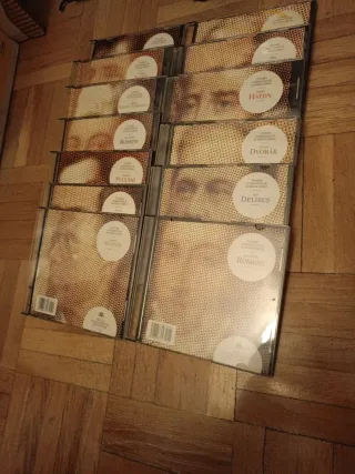 Colección de CDs de grandes compositores de música clásica. - Incluye obras de compositores como Rossini, Mahler, Puccini, Dvorak, Haydn, Delibes, Rimsky-Korsakov y más. - Ideal para amantes de la música clásica.