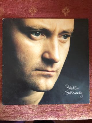 Vinilo del álbum ...But Seriously de Phil Collins. Un clásico del pop rock internacional. - Portada con el primer plano del artista. - Título del álbum escrito a mano.