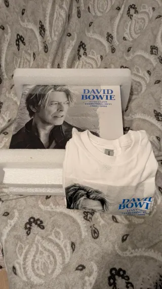Caja de vinilos de David Bowie I Can't Give Everything Away. Edición con camiseta extra talla L, la caja está precintada y totalmente nueva. Periodo 2002-2016.