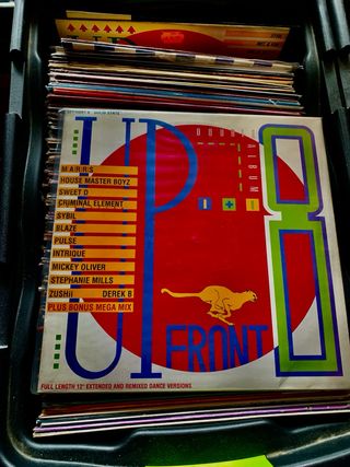 Colección de vinilos de música dance y electrónica, incluyendo el álbum Upfront. 8 - Upfront es un álbum doble. - Incluye Full Length 12 Extended and Remixed Dance Versions. - Artistas listados: M.A.R.R.S, House Master Boyz, Sweet D, Criminal Element, Sybil, Blaze, Pulse, Intrique, Mickey Oliver, Stephanie Mills, Zushi, Derek B. - Contiene Plus Bonus Mega Mix. 2 Lps doble Original UK