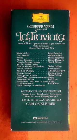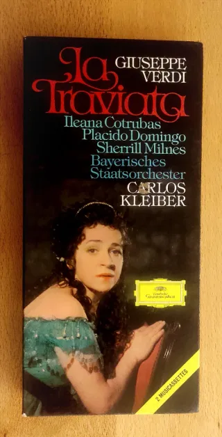 Doble CD de la ópera La Traviata de Giuseppe Verdi. - Intérpretes: Ileana Cotrubas, Placido Domingo, Sherrill Milnes. - Orquesta: Bayerisches Staatsorchester. - Director: Carlos Kleiber. - Sello discográfico: Deutsche Grammophon.