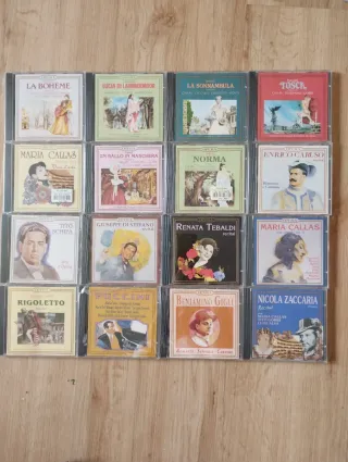 Conjunto de 16 CDs de ópera con grandes voces y títulos. Sin desprecintar. - Puccini - La Bohème (CD 54002) - Donizetti - Lucia di Lammermoor (CD 54004) - Bellini - La Sonnambula (CD 54005) - Puccini - Tosca (CD 54009) - Maria Callas - Vissi d'Arte (CD 54014) - Verdi - Un Ballo in Maschera (CD 54016) - Bellini - Norma (CD 54017) - Enrico Caruso - Recital (CD 54024) - Tito Schipa - Arie d'Opera (CD 54025) - Giuseppe di Stefano - Recital (CD 54048) - Renata Tebaldi - Recital (CD 54049) - Maria Callas - Arie celebri Vol.3 (CD 54054) - Giuseppe Verdi - Rigoletto (CD 54057) - Puccini (CD 54061) - Beniamino Gigli (CD 54063) - Nicola Zacc