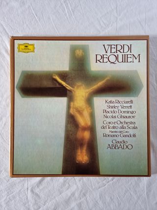 Misa de Requiem de Giuseppe Verdi. Director: Romano Gandolfi. 2 LP en perfecto estado y estuche en buen estado. Deutsche Grammophon Stereo 2707 120. Madrid 1981.