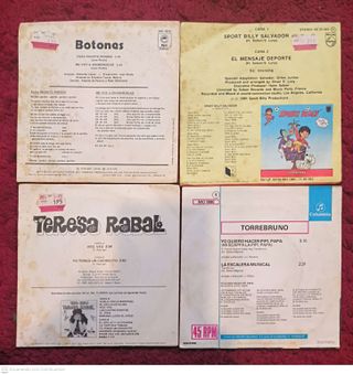 INFANTIL - Lote 4 Singles (BOTONES, SUPERBANDA, TERESA RABAL Y TORREBRUNO) * Precio por separado SUPERBANDA (SPORT BILLY) 14€ - También se venden por separado. - Fotos originales del artículo - Envíos por Correo Certificado (Tarifa de Correos año actual) No es posible enviar a través de Wallapop desde Canarias y no se envía ordinario ni a contra rembolso