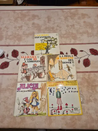 Lote de cinco vinilos de música infantil. - Canciones Infantiles - Ali-Baba y los 10 Ladrones - La Bella Durmiente del Bosque - Alicia en el País de las Maravillas - Canciones Infantiles de corro y rueda