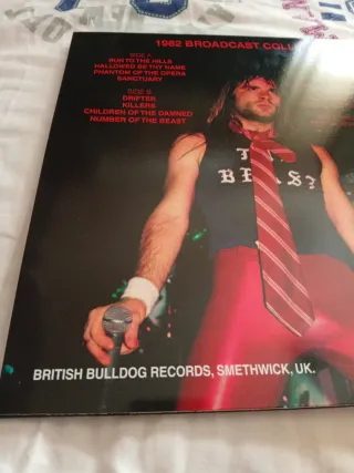 - The Number of the Beast 1982 España. En perfecto estado, contiene insert. 50€ - Piece of Mind 1984 UK. En perfecto estado, tiene una pegatina del precio en libras. Gatefold. 40€ - Powerslave 1985 España. Como nuevo. No disponible - Live After Death 1985 España. En muy buen estado, algún roce en el lomo. Contiene inserts y póster originales. 70€ - Killers 1985 España. Como nuevo 50€ - Somewhere in Time 1986 España. Como nuevo. Con insert original. 45€ - Seventh Son of a Seventh Son 1988 España. Como nuevo. Contiene insert original. 50€ - No prayer for the dying 1990 ESPAÑA. Como nuevo. Con insert original. 35€