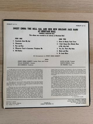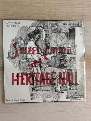 Disco de vinilo de jazz con Sweet Emma en Heritage Hall. - Compatible Stereo. - Jazz de Nueva Orleans. - Grabación de Nobility 7/1. - Soporte: VG+ // Funda: VG+