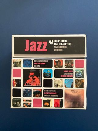 Colección The Perfect Jazz Collection con 25 álbumes originales de jazz. - Incluye una selección de artistas icónicos del jazz. - Formato de 25 CDs. - Preciosa presentación imitando vinilos. - Muy buen estado.