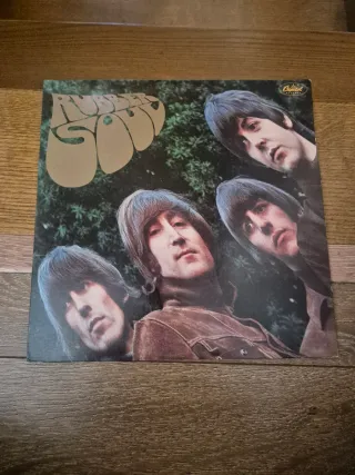 Vinilo LP del álbum Rubber Soul de The Beatles. - Sello: Capitol Records. - Género: Pop/Rock Internacional. En uno de los laterales hay dos partes rasgadas como se vé en la foto