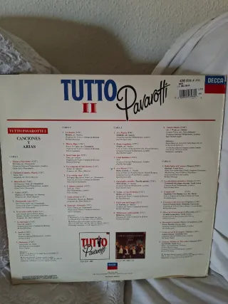 Doble vinilo Tutto Pavarotti de la discográfica Decca. - Contiene una selección de las mejores interpretaciones de Luciano Pavarotti. - Ideal para amantes de la ópera y la música clásica.