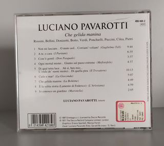 COMPRA MINIMA 5€, COMPLETO CON OTROS ARTICULOS. CD de ópera con Luciano Pavarotti interpretando Che Gelida Manina. - Incluye obras de compositores como Rossini, Bellini, Donizetti, Boito, Verdi, Ponchielli y Puccini. - Grabación de Decca.