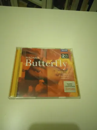 Grabación de la ópera Madama Butterfly de Giacomo Puccini. - Contiene libreto con guía de escucha. - Intérpretes: Mirella Freni, Luciano Pavarotti, etc. - Orquesta y Coro de la Royal Opera House, Covent Garden. - Director: Sir Georg Solti. - Sello discográfico: Decca.