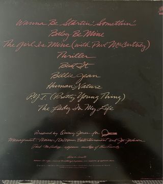 MICHAEL JACKSON Thriller. Disco Vinilo Original 1982 Incluye: A1 Wanna Be Startin' Somethin' 6:02 A2 Baby Be Mine 4:20 A3 The Girl Is Mine Featuring – Paul McCartney 3:42 A4 Thriller 5:57 B1 Beat It 4:17 B2 Billie Jean 4:57 B3 Human Nature 4:05 B4 P.Y.T. (Pretty Young Thing) 3:58 B5 The Lady In My Life 4:57