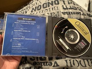 Conjunto de 23 CDs de música clásica de Mozart. - Incluye varias sinfonías, conciertos y serenatas. - Títulos visibles en las portadas de los CDs y lomos de las cajas. - Formato CD.