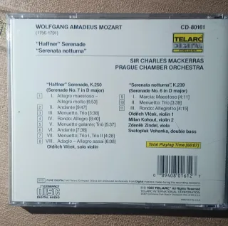 Este CD de música clásica presenta dos serenatas de Mozart, interpretadas por la Prague Chamber Orchestra bajo la dirección de Sir Charles Mackerras. - Haffner Serenade (Serenata No. 7 en D, K. 250) - Serenata Notturna (Serenata No. 6 en D, K. 239) - Grabación Telarc Digital