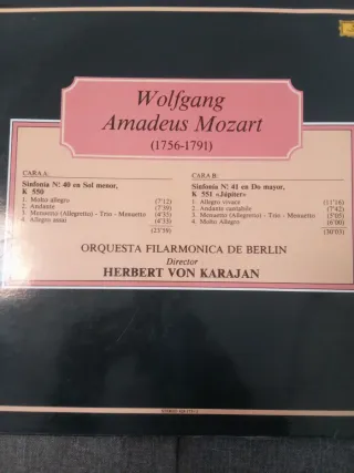 Grabación de las Sinfonías N.º 40 y N.º 41 de Mozart. - Sinfonía N.º 40 en Sol menor, K. 550 - Sinfonía N.º 41 en Do mayor, K. 551 Júpiter - Orquesta Filarmónica de Berlín - Director: Herbert von Karajan