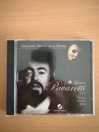 CD de Grandes Divos de la Ópera con Luciano Pavarotti, volumen 2. - Incluye obras de Bellini, Mozart y Verdi. - Portada con imagen de Pavarotti y máscara. - Sello discográfico Grupopoly.