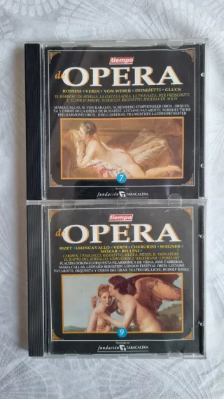 Colección de dos CDs de la serie Tiempo de Ópera, volúmenes 7 y 9. - CD 7: Obras de Rossini, Verdi, Von Weber, Donizetti, Gluck. - CD 9: Obras de Bizet, Leoncavallo, Verdi, Cherubini, Wagner, Mozart, Bellini. - Incluye grabaciones con artistas como Maria Callas, Luciano Pavarotti y José Carreras. - Elige la música que te guste y te la mando junta para abaratar el envío