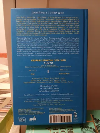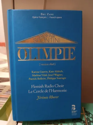 Grabación de la ópera Olimpie de Gaspare Spontini, versión de 1826. - Dirección musical de Jérémie Rhorer. - Intérpretes: Karina Gauvin, Kate Aldrich, Mathias Vidal, Josef Wagner, Patrick Bolleire, Philippe Souvagie. - Coro: Flemish Radio Choir / Le Cercle de l'Harmonie. - Editado por Bru Zane.