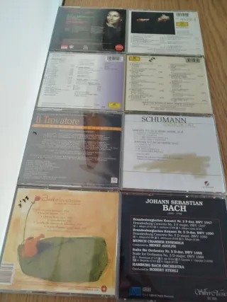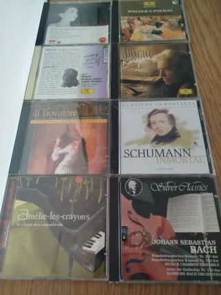Lote de 8 CDs de música clásica y ópera. 2€ UND. - Live in Athens con Maria Callas. - Mozart: Requiem con Karajan y Fricsay. - Il Trovatore con Maria Callas. - Walzer & Polkas de Strauss. - Adagio con Karajan. - Schumann Inmortal. - Amélie-les-crayons: Le chant des coquelicots. - Silver Classics: J.S. Bach - Brandenburg Concertos.