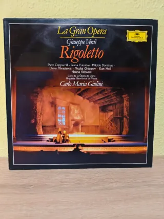 3 Vinilos LP: ópera Rigoletto de Giuseppe Verdi, parte de la colección La Gran Ópera. - Interpretado por Piero Cappuccilli, Ileana Cotrubas, Plácido Domingo, Elena Obraztsova, Nicolai Ghiaurov, Kurt Moll y Hanna Schwarz. - Coro de la Ópera de Viena. - Orquesta Filarmónica de Viena. - Dirección de Carlo Maria Giulini. - Sello Deutsche Grammophon. Disfruta del sonido cálido y profundo que sólo puede ofrecer este formato. Audiófilos y amantes de lo vintage y retro esta oferta es para vosotros, no la dejéis escapar! Cualquier duda pregunten. Más vinilos en mi perfil. NO HAGO ENVÍOS.