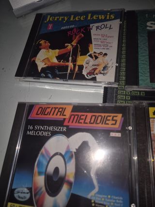 Lote de 9 CDs con música variada. - Incluye Jerry Lee Lewis - Rock 'n' Roll Vol. 2. - Incluye Digital Melodies - 16 Synthesizer Melodies. - Incluye the best of Strauss - The royal philarmonic Hits (2 cd,s) - Maria Isabel - Virtual Pop - Sevillanas de Oro