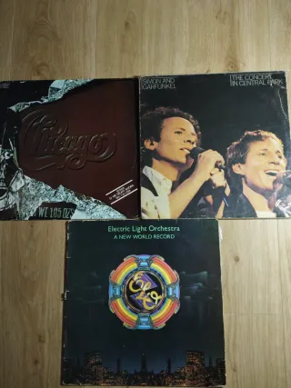Lote de tres vinilos de música pop y rock. Buen estado general los discos, las portadas un poco sobadas del paso del tiempo, sobre todo la de Simon & Garfunkel. - The Concert in Central Park - Simon & Garfunkel - A New World Record - Electric Light Orchestra - Chicago - Chicago No leer Discos,lps,lotes,LP,disco,vinilo, Salsa, rock, pop, disco, heavy Vinilos, disco Pop, rock, soul, jazz, Pink Floyd, Dire straits, Queen, Bon Jovi, AC/DC, Nirvana, Europe, Mike Oldfield, Madonna, David Bowie, U2, kiss, barón rojo, Triana, creedence clearwater revival, barricada, prince, Michael Jackson, pet shop boys, Spandau ballet, OMD,