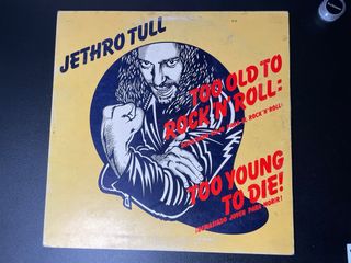 Vinilo LP del álbum Too Old To Rock 'N' Roll: Too Young To Die de Jethro Tull. - VG+/VG+ - Portada gatefold con algo de descoloración. - Edición española 1976 - Etiqueta del disco con marcas de rotulador. - Se reproduce entero sin saltos.