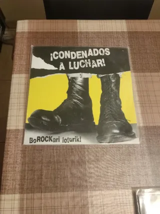 Vinilo de punk rock con el título ¡Condenados a Luchar!. - Portada con diseño llamativo. - Incluye BoROCKari loturik! en la parte inferior.
