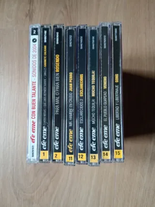 Colección de 8 CDs de música pop y rock en español del grupo Efe Eme. - Con Buen Talante - Sonidos de 2004 - Cuatro Rosas + Que Dios Reparta Suerte + Singles Gabinete Caligari - Para Mal O Para Bien Rosendo - Mr. Hambre en Crudo Juan Perro - Esclarecidos 2 Esclarecidos - Mucho Tequila! Mucho Tequila! - El Pueblo Guapeao Veneno - Libertad y Libertinaje Gong