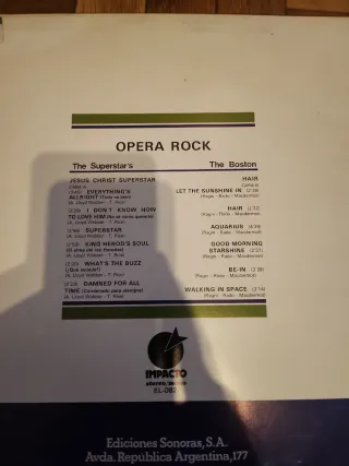 Vinilo de ópera rock con Jesus Christ Superstar y Hair. - Portada con ilustraciones de Jesus Christ Superstar y Hair. - Incluye el logo de Impacto y el código EL-002.