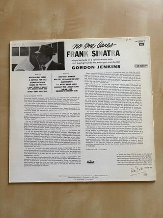 Disco de vinilo No One Cares de Frank Sinatra. Señales de uso en la carpeta. - Orquesta dirigida por Gordon Jenkins. - Género: Pop/Rock Internacional.