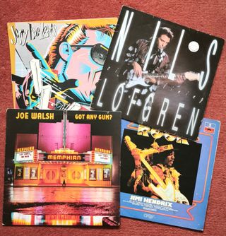 4 LPs de Cantantes de Rock americano de las décadas de los 70, 80 y 90s: Jerry Lee lewis (Idem, 1979), Jimi Hendrix (Idem, 1968, reedición 1981), Joe Walsh (Got any gum? 1987), Nils Lofgren (Silver lining, 1991), Todos en buen estado, tanto los discos como las carátulas y encartes Se vende también por separado a 11 euros cada uno. Para otros LPs, lotes o posibles combinaciones y sus precios,consultar mi perfil.