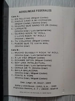 Cinta Cassette Aerolineas Federales Echame Sifon