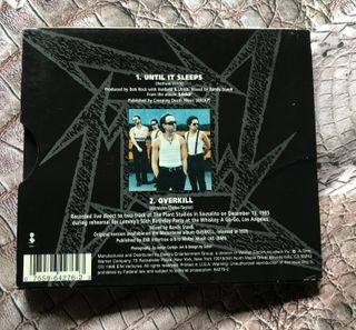 CD Single Metallica UNTIL IT SLEEP. Edicion 1996 UK de mi coleccion personal. Heavy Metal Hard Rock Power Trash Speed Symphonic Prog Progressive Epic Acoustic Live acdc megadeth motorhead Anthrax Kreator Sodom Onslaught Flotsam and Jetsam Megadeth Testament Exodus Annihilator Slayer Black Sabbath Death Angel Venom Exumer Sepultura Celtic Frost Coroner Destruction Pungent Stench Carcass Entombed Helloween Iron Maiden Metallica Pantera Kiss Queensryche Judas Priest UFO Saxon Aerosmith Guns N Roses Bon Jovi Ozzy Manowar Nightwish Rage Digger Accept Theater Gamma Stratovarius Sonata Hammerfall