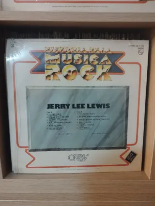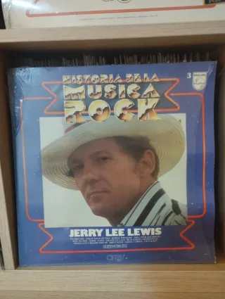Disco de vinilo de Jerry Lee Lewis, parte de la colección Historia de la Música Rock. - Incluye canciones como Great Balls of Fire y Roll Over Beethoven. - Sello discográfico Philips. - Edición en español. En buen estado.