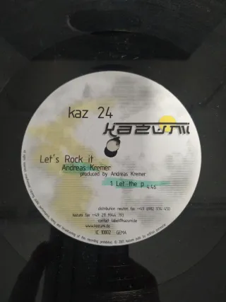 Vinilo ANDREAS KREMER - Let's Rock It SELLO KAZUMI 2001 Estilo : TECHNO DISCO VG+ PORTADA VGEn muy buen estado, solo en parte trasera quedan restos de antiguo adhesivo Buen sonido