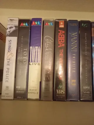 Lote de cintas VHS de conciertos de música pop y rock. - Celine Dion: Live 1997 in Memphis - Yanni: Tribute - Subterranean: The Concert - Hanson: The Road to Albertane - More ABBA Gold: More ABBA Hits STING and The police TOTO Precio por unidad. Hago precio especial comprando varias