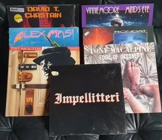 Lote de vinilos de guitarristas de rock y metal. - David T. Chastain - Guitar Masters - Alex Masi - Attack of the Neón Shark - Tony MacAlpine - Edge of Insanity - Tony MacAlpine - Maximun Security - Vinnie Moore - Mind's Eye - Impellitteri - EP - Rondat - Rape of the Earth Todo primeras ediciones. Escucho ofertas razonables. Lote completo