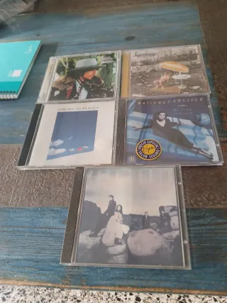 PRECIO LOTE .PUEDE SER POR SEPARADO O CONVINAR CON OTROS CDS O VINILOS DECMI PERFIL HAGO LOTES Conjunto de cinco CDs de música. - Chris Rea - On The Beach - Supertramp - Brother Where You Bound - Belinda Carlisle - Heaven On Earth - Cock Robin - First Love Last Rites - Un CD de música internacional sin título visible.
