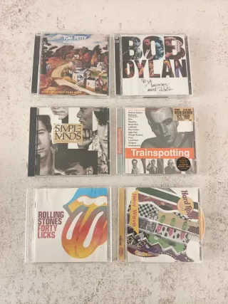 Lote de 6 CDs de música variada, ideal para coleccionistas. - Tom Petty - Into The Great Wide Open - Bob Dylan - The 30th Anniversary Concert Celebration - Simple Minds - Simple Minds - Trainspotting (Banda Sonora) - Rolling Stones - Forty Licks Este 2 discos, presenta pérdidas de letras en disco y falta reverso de texto en caja, pero funcionan correctamente - New Wave - Hard Rock Cafe
