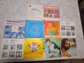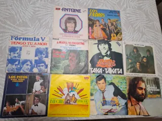 Lote de 10 discos de vinilo de los años 70, una colección variada de pop y rock. - Fórmula V - Tengo Tu Amor - Antoine - En Español - Los Indios - Marinerito de mi Patria - A Maria Yo Encontre - Taka Takata - Modulos - Nada Me Importa - Los Payos - Maria Isabel - Bee Gees - My World - Palito Ortega - Corazon Contento - Demis Roussos - When I Dream