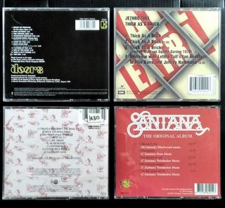 Lote de 4 CDs de música. - The Doors - Jethro Tull - Thick As A Brick 1) The Doors The Doors 2000 – Europe CD, HDCD, Album, Reissue, Remastered, Stereo Elektra – 7559-74007-2. 2) Jethro Tull -Thick As A Brick; 1998 – Europe CD, Album, Reissue, Remastered, Stereo Chrysalis – 7243 4 95400 2 6, Chrysalis – 495 4002. 3) John Fogerty - Centerfield; Europe CD, Album, Reissue Warner Bros. Records – 7599-25203-2. 4) Santana - The Original Album; 1994 – UK CD, Compilation, Reissue Wise Buy – WISE 013. - John Fogerty - Centerfield - Santana - The Original Album